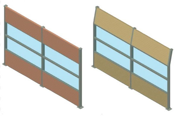 В данном типе шумозащитного экрана верхняя панель устанавливается с наклоном 12 градусов к оси экрана. Данное решение позволяет снизить звуковое давление на дополнительные 1-2 ДБа.